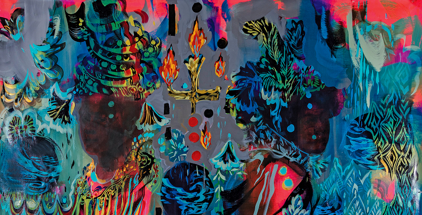 Desde la magia colorida de Clara Ledesma hasta la densidad simbólica de Iris Pérez, este capítulo aborda el mestizaje, lo místico y lo femenino como ejes visuales. Ambas artistas habitan un mundo donde los cuerpos se transforman en mitos, y lo pictórico se vuelve puente entre mundos mágicos y surreales.